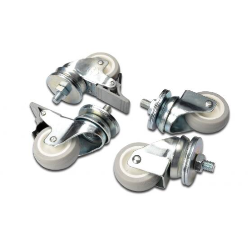 Set 4 ruote per armadi rack.Supportano fino a 250 kg.2 ruote sono bloccabili.Con attacco a perno, universali su ogni armadio che abbia dei fori appositi sul fondo.