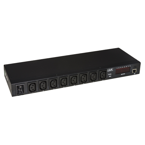 LINK MULTIPRESA19" 8 PORTE IEC C13 FEMMINA CONTROLLO TRAMITE IP CON DISPLAY PER VOLT E AMPERE E SENSORI AMBIENTALI TEMPERATURA E UMIDITA'