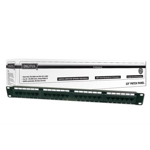 Il pannello patch CAT 6 non schermato di DIGITUS? ? disponibile nelle versioni 16 porte o 24 porte (1 unit?) o 48 porte (2 unit?).Esso ? stato creato ai sensi della norma Link Performance classe E, per un massimo di 250 MHz, ISO/IEC 11801 e EN 50173 e certificato UL.L'alloggiamento ? stato creato in acciaio zincato laminato a freddo con uno spessore di 1,5 mm ed ? quindi perfetto per installazione in armadi da 19''.Dettagli tecnici Propriet? di trasferimento: Categoria 6 Campi di applicazione: Fino a 250 MHz, 1GBase-T, PoE Norme: ISO/IEC 11801 2nd Ed., EN 50173-1, EIA/TIA 568-C Caratteristiche generali: Adatto per installazione in armadi da 483 mm (19'') Prese RJ45, 8P8C Installazione del cavo attraverso moduli LSA, codice del colore secondo EIA/TIA 568 A & B Fissaggio del cavo attraverso fascette Propriet? meccaniche: Materiale dell'alloggiamento: Acciaio laminato a freddo, zincato, spessore 1,5 mm ai sensi di EN1.4301, UNS S30400, AISI 304 e LMSAD110 Materiale presa RJ45: ABS UL 94V-0 Contatto presa RJ45: Bronzo fosforoso verniciato, contatto dorato 0,5 ? Schermatura RJ-45: Bronzo nichelato Isolante connettore: Krone LSA+, UL 94V-2, bronzo fosforoso galvanizzato Massa del cavo: Non incluso nella confezione Circuito stampato: FR4, UL 94V-0 Propriet? fisiche: Forza di inserimento: 30N max (IEC 60603-7-5) Carico di trazione: 7,7 kg tra presa e spina Temperatura di esercizio: -20? C bis +70 ?C (ISO/IEC 11801, EN 50173-1, ANSI/TIA/EIA 568 C) Ciclo presa: > 750 ai sensi di ISO/IEC 11801, IEC 60603-7-5 Terminale: > 200 ai sensi di ISO/IEC 11801, IEC 60603-7-5 Supporto di base: 22-26 AWG conduttore intrecciato e massivo Resistenza all'isolamento: > 500 MOhm Resistenza del contatto: < 20 MilliOhm Rigidit? dielettrica: 1000 VDC (contatto/contatto), 1500 VDC (contatto/massa) Resistenza del contatto: < 20 MilliOhm Rigidit? dielettrica: 1000 VDC (contatto/contatto), 1500 VDC (contatto/massa) Colore: nero RAL9005 Colore: nero, RAL 9005 Porte: 24 Unit?: 1 Categoria: CAT 6
