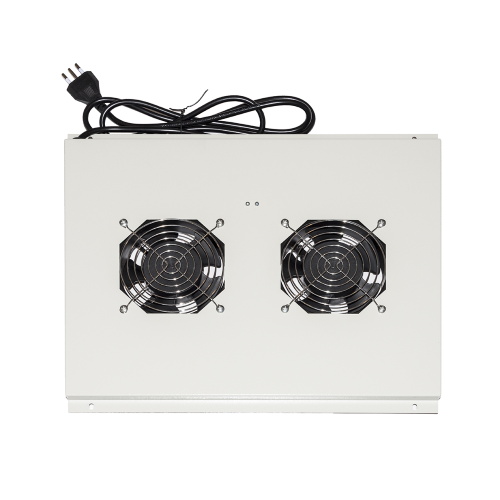 SISTEMA DI VENTILAZIONE PER RACK 19'' CON TERMOSTATO Raffreddano in maniera efficiente l'interno dell'armadio evitando il surriscaldamento dei dispositivi contenuti nell'armadio e quindi preservandoli da usura.Con 2 ventole 220 volt 120x120x38mm.Con griglia di protezione.Si installano a soffitto dei mobili rack marchio Link profondi 600 mm.Colore grigio chiaro (RAL7035).Con cavo di alimentazione mt.1,80 spina tripolare italiana 10A.Le viti di fissaggio sono incluse.Misure 41X35 cm.