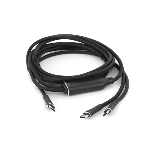 Cavo con connettori USB-C maschio/maschio mt 1Permette la ricarica fino a 100 watt (totale per i due connettori)Sdoppiatore con 2 connettori maschioGuaina in siliconeContatti nichel1 dispositivo collegato: 100 watt max2 dispositivi collegati: connettore 1 max 65 watt, connettore 2 max 35 wattChipset IT690FN