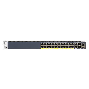 ProSafe Stackable Switch M4300-28G-PoE+ - Full Managed Gigabit PoE+ 720W Layer 3 a 24 porte 10/100/1000 Mbit RJ45 PoE (802.3af-802.3at) + 2 porte 100/1000Mbit/10Gbit RJ45 + 2 porte SFP/SFP+ (per moduli AGM731F - AGM732F - AGM734 - AXM761 AXM762 - AXM763