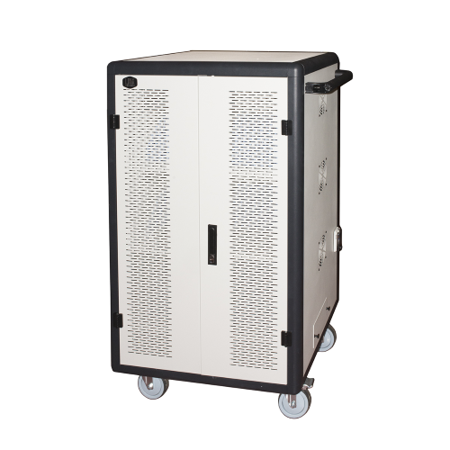 Armadio con chiusura a chiave che permette la protezione e l?alimentazione di 60 notebook o tablet custoditi all'internoIdeale per scuole o uffici, dove si necessiti di un posto sicuro in cui alloggiare dispositivi elettronici, dando la possibilit? di ricaricarsi e impedendo il loro surriscaldamentoCon tre multiprese posteriori con 20 prese universali italiane/Schuko ciascuna, a cui collegare i cavi e gli adattatori dei dispositivi da ricaricareI dispositivi si posizionano in verticale sui ripiani, separati da divisoriI cavi di alimentazione per i dispositivi si possono organizzare agganciandoli a delle alette sui ripianiCi si possono alloggiare dispositivi di misura massima cm 28 x 37, altezza cm 2,3.I separatori dei ripiani sono removibili, in questo modo si possono alloggiare anche notebook o altri dispostivi pi? larghiCon 4 ruote incluse di cui due bloccabiliCon porte traforate con chiusura a chiave, permette la protezione dei dispositivi contenuti mentre si ricaricanoCon tre ripiani con 20 alloggiamenti per notebook o tablet ognunoCon maniglia per facilitare lo spostamento del carrello di ricaricaL'armadio ? in acciaio, colore bianco e bordi arrotondati in plastica neri, si adatta all?arredamento di tutti gli ambienti, con porte traforate, assicura la protezione dei dispositivi interni, e ne permette l'areazione grazie alla porta grigliata e alle sei ventole di raffreddamento incluse (tre per lato)La porta anteriore e posteriore hanno la chiusura a chiaveCavo di alimentazione incluso con spina italiana 16A Lunghezza metri 2,5Durante gli spostamenti dell?armadio il cavo si pu? alloggiare nell?apposito vanoCon alimentatore incluso AC200/110V con funzione di protezione contro sovraccarichiMisure con ruote (LxPxA): cm 75x60x132Misure senza ruote (LxPxA): cm 75x60x116