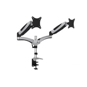 DIGITUS Supporto da tavolo universale duale LED/LCD con molla a gas Braccio da tavolo universale con molla a gas per due video per la regolazione flessibile su 4 livelli Il morsetto da tavolo universale consente l'installazione di schermi LCD e LED di tutte le marche fino a 69 cm.Grazie al braccio con molla a gas, il monitor pu? essere fissato a qualsiasi altezza. ? sufficiente fare attenzione alle dimensioni VESA e al peso del monitor per scegliere il supporto appropriato. Gestione del cavo integrata nella staffa. Compatibile con gli standard VESA 75 x 75 e 100 x 100 mm Fino a un carico massimo di 8 Kg Peso: 4,7 kg Dimensioni: 150 x 890 x 320 mm
